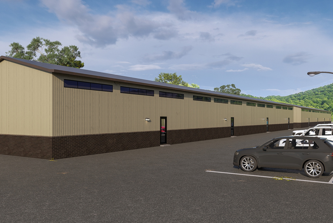 Each FlexBay unit features a finished vestibule, office, restroom, high-efficiency HVAC, gas heat, LED lighting, insulated liner walls, and a 12′ × 14′ overhead door. Optional mezzanine available.